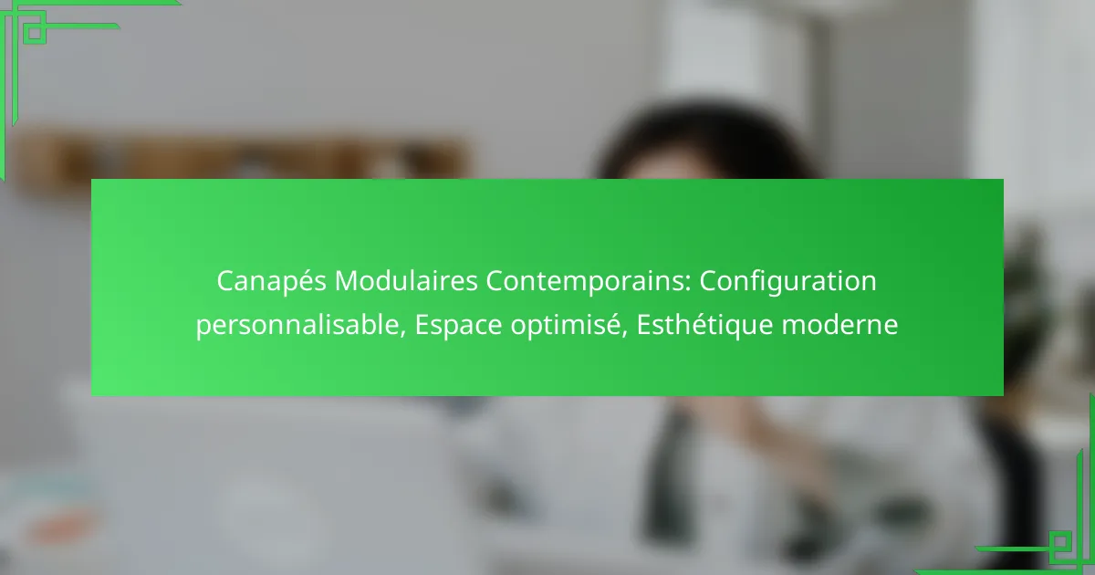 Les canapés modulaires contemporains se caractérisent par leur flexibilité et leur capacité à s’adapter aux besoins variés des utilisateurs. Actuellement, les tendances mettent l’accent sur des configurations personnalisables, une optimisation de l’espace et une esthétique moderne qui répondent aux attentes des consommateurs.